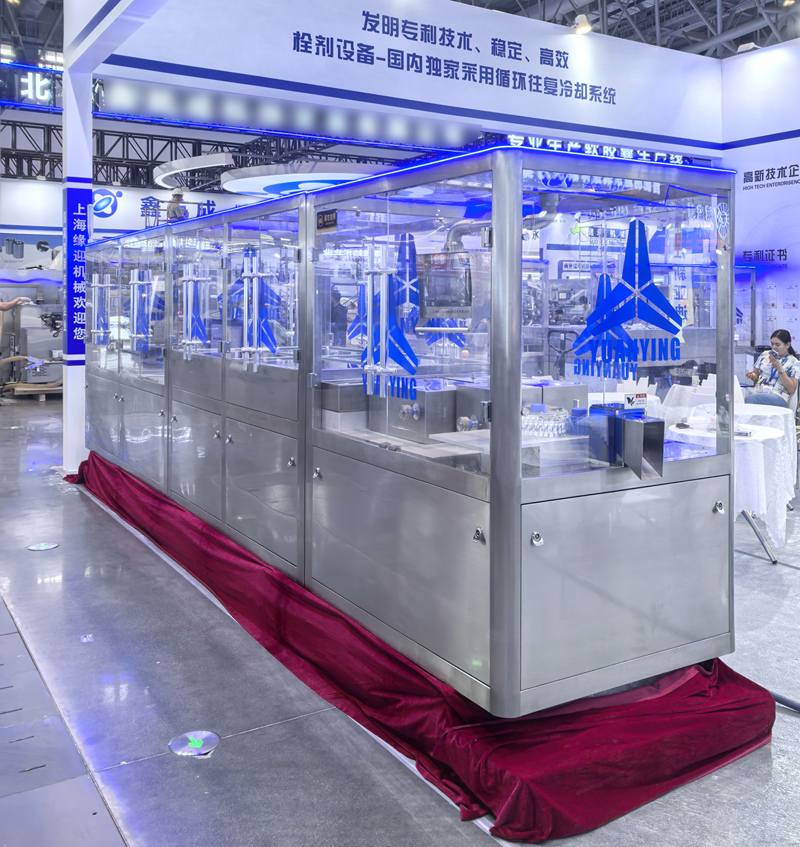 采用伺服灌装,伺服剪切,自动替废功能,准确度更高,运行更平稳。 设备采用PLC可编程控制和人机界面操作,操作简便,调节方便、温度控制精确、运行平稳。 模具温度采用温度传感器和微电脑控制系统实现高精度恒温控制。 储液罐采用316L不锈钢材质,容积适当,具备保温、加热功能,温度控制精确;储罐配有搅拌装置,保证任何时候桶内药液的均一性;储液罐通过管道与灌装机构连接,药液保温循环输送,保证药液的流动性,满足灌装的需求。 采用插入式直线灌注机构,定位准确,不滴药、不挂壁;单粒计量0.5-5ml,灌装误差±2%。 连续式冷却定型,灌注后栓剂壳带能充分冷却定型,实现液固转化。 连续制带,连续封口,封口过程批号自行打印;封口应密封完好,外观整齐,良品率不低于98% 。
